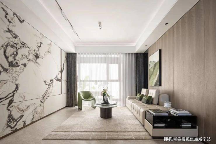 比如,入户门厅采用产地巴西的范思哲黑和产地意大利的普拉达绿点缀,门厅气质也一下子进阶到「明星」款。