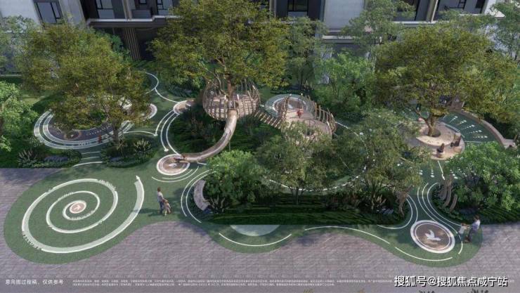 在小区中央,退让出1条足有约180米长的中轴景观带,由南至北贯穿整个社区,为居者带来窗外的风景与下楼即享的生态绿意。