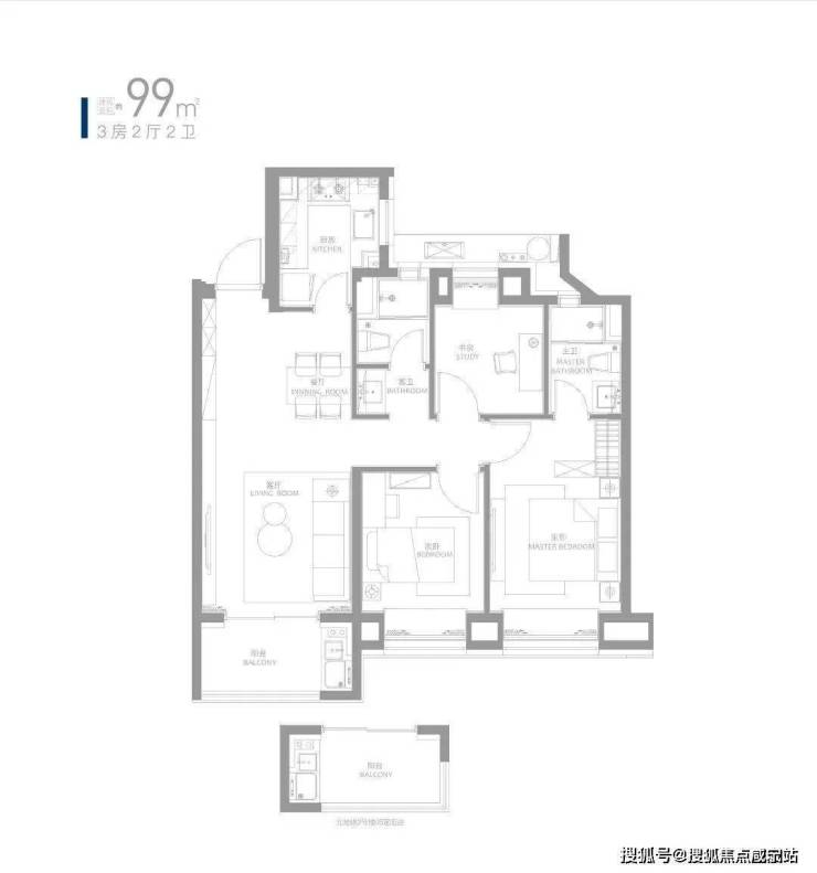 约89㎡三房,1.5卫设计为临港首创,在总价可控的基础上兼具实用性。