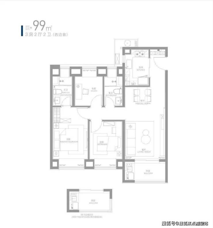 约99㎡三房,全卧室+卫生间均带飘窗,清风光影景色宜人。