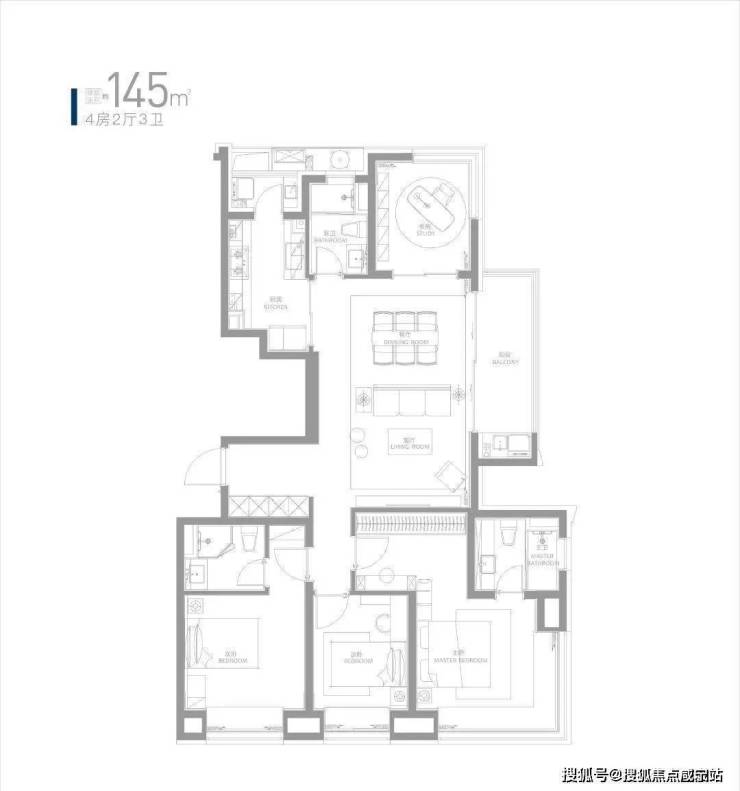 约145㎡四房分布于景观中央位置,可直面一线双水系河景。 大横厅搭配270°景观视野,可能是临港主城目前在售户型中,景观视野王者户型。