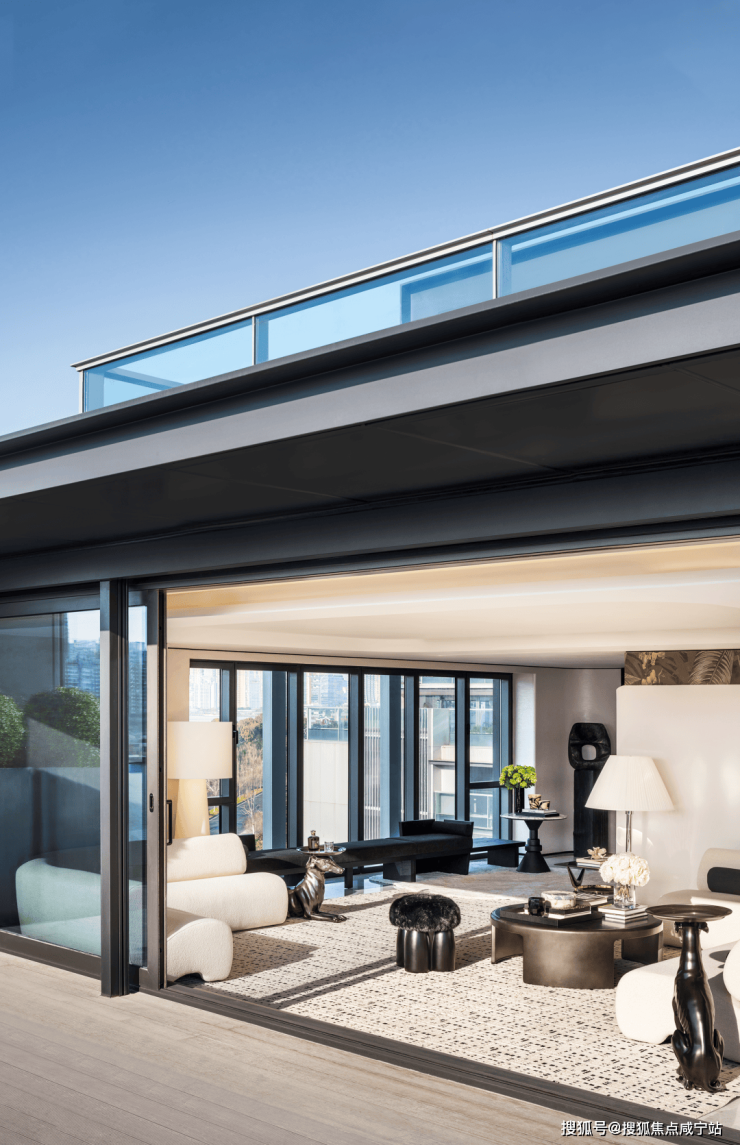 建筑方面项目采用上海独一无二的“类幕墙设计”立面,再加上平推窗与立柱一体化设计,以及超大尺度的落地玻璃窗,搭配“开放式铝板设计”。将大师级的灵感和理念做到了全方位落地还原!