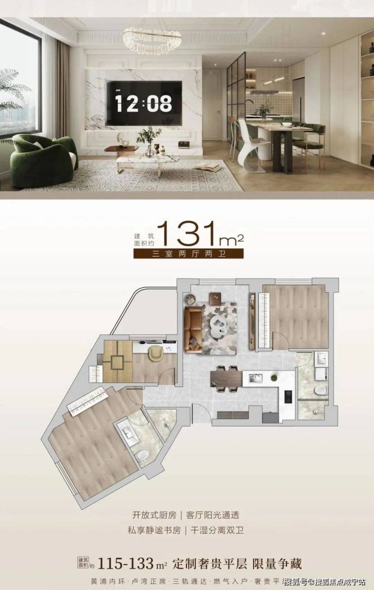 【黄浦·滨湾】黄浦卢湾板块,通燃气大平层,115-133平奢装三房,鲁班路地铁口,3条地铁线,4梯6户,600万起买黄浦核芯