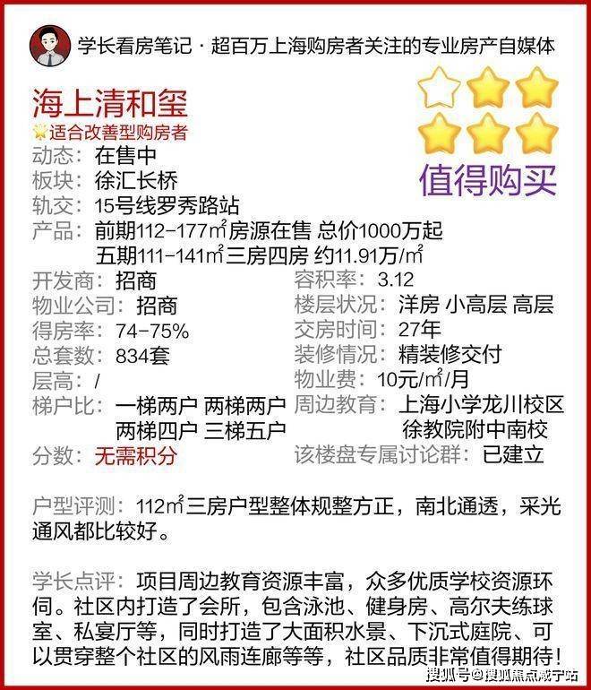 清和玺对比周边同类项目(如徐汇滨江中海项目),价格优势明显,但门槛仍属高端。6