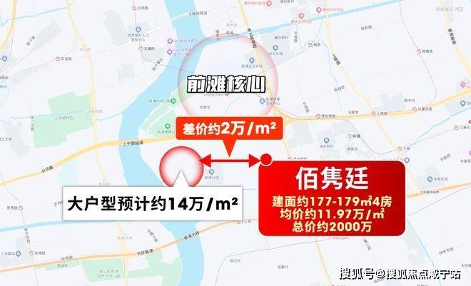 而佰隽廷直线距离前滩太古里仅约1.2公里,步行就能接入核心配套,同是4房户型,单价却比前滩核心大户型低约7万/㎡,算下来一套房总价能省1200万+,就能享受前滩TOP级配套。