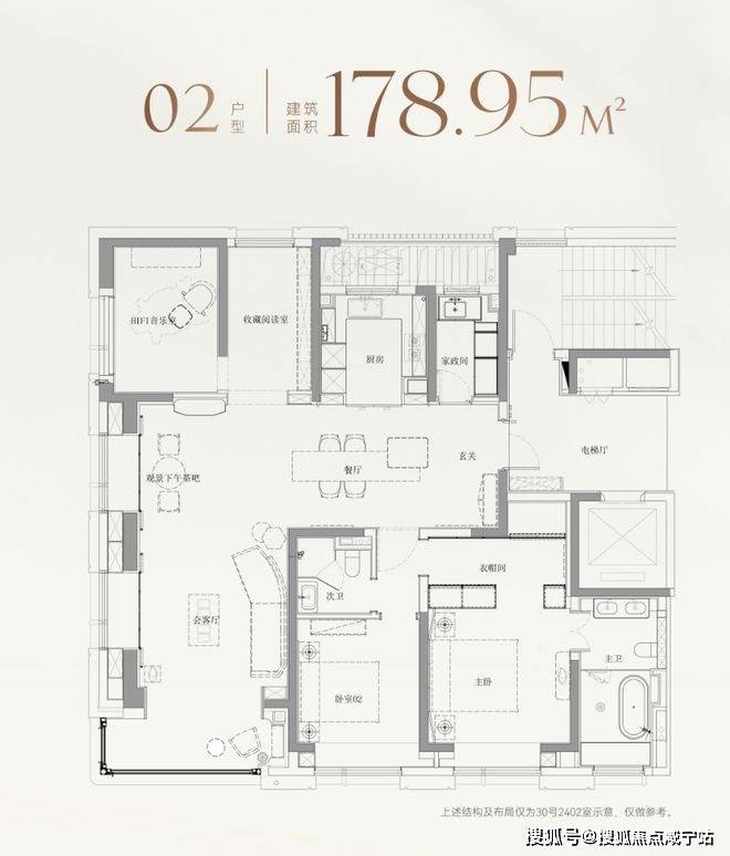 以建面约179㎡的边套为例,并未将北房间局限为常规卧室,而是灵活打造为HIFI音乐室与收藏阅读室,既可作为业主的灵感工作室,也能成为孩子的兴趣天地;