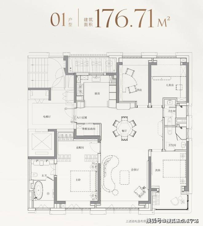 而建面约177㎡01室,则针对性地打造为4房格局,精准契合二胎家庭或三代同堂需求