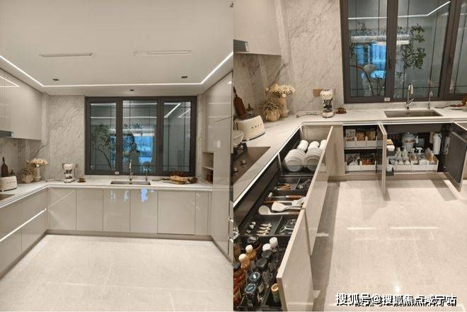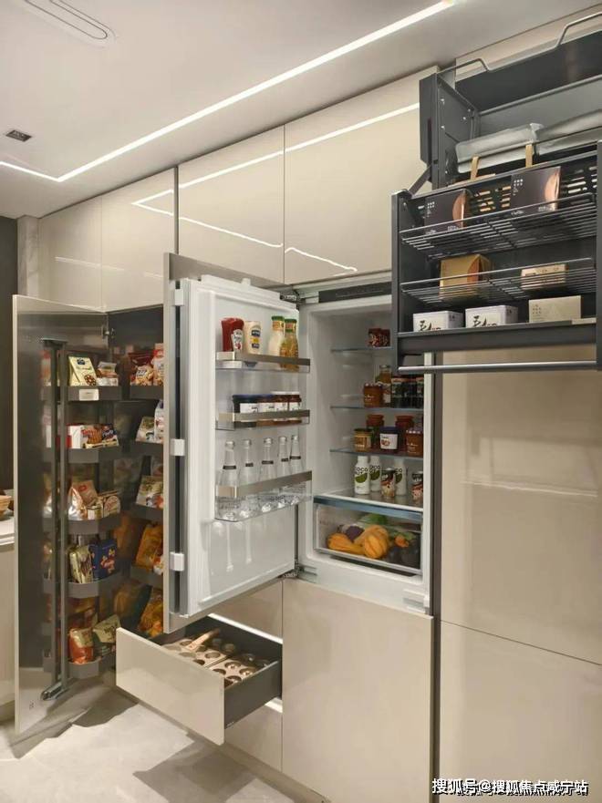 厨房区域同样是细节满满。美诺四件套+博世双冰箱的配置够高: