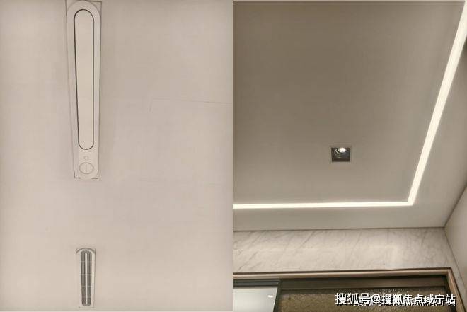 杨浦蘭桂坊全屋悬浮式吊顶设计,取代了已经泛滥的弧面吊顶造型,搭配无主灯设计也很好看: