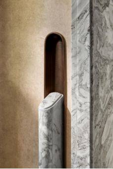 ②个性定制的革新:深入细节的专属感营造,提供包括豪宅金属线(挂画系统)、门牌、门把手及背景墙岩板等在内的深度定制选项,在去年保利首创可定制引领市场潮流之后,再次迭新,让家成为独特的个人印记。
