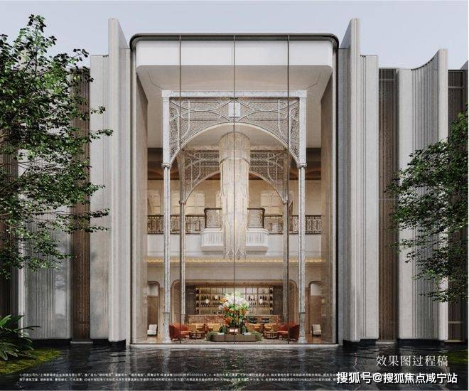 在建筑表达上,深度萃取巴黎白马庄园(Cheval Blanc Paris)核心美学,同时融合上海花园饭店、和平饭店、张园石库门等东方海派建筑元素,以“仪式感、纯粹性、细节感”为核心,打造兼具国际风范与海派底蕴的建筑格调仪式感上,对称式布局搭配精致雕花纹饰,入户动线仪式感拉满;