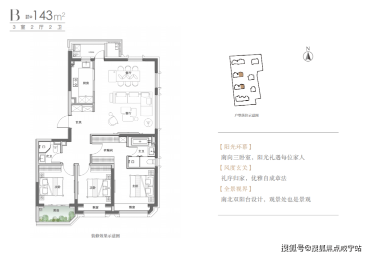 建面约143㎡ 3房产品,边厅户型,拥有超配北阳台空间,可作为家政空间使用,南向全明三卧室,通透舒适。