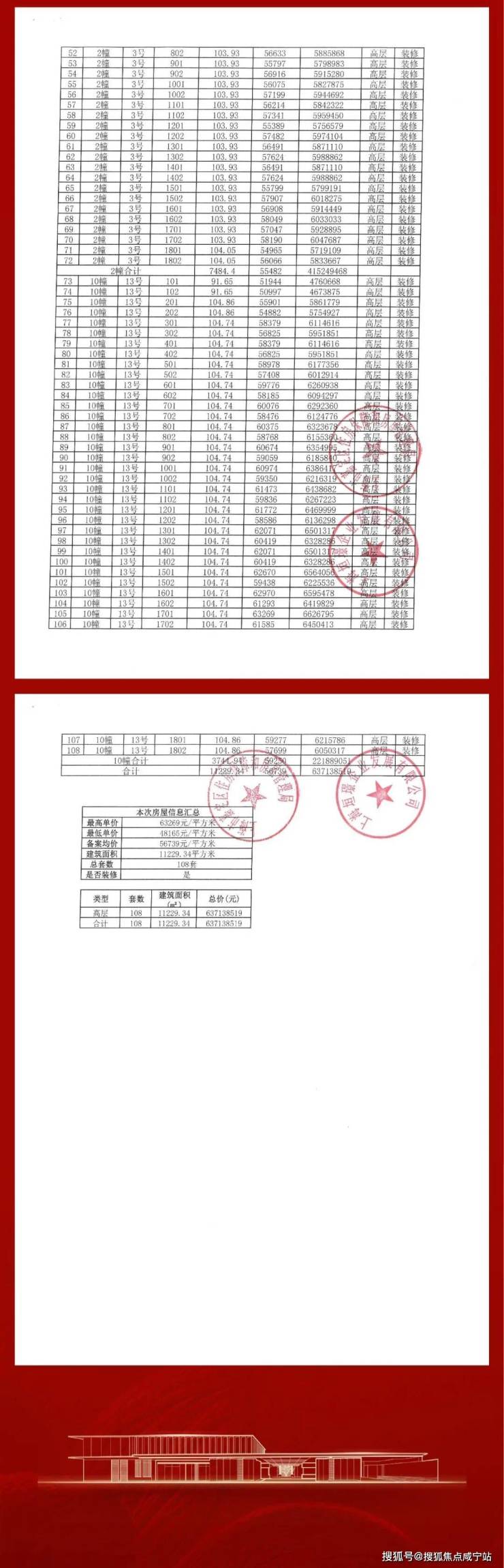 项目一房一价表: