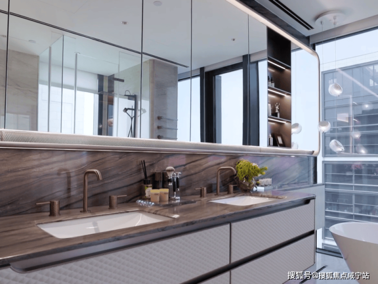 厨房内的厨电甄选塔尖厨电品牌嘉格纳,橱柜选用德国高端品牌希曼蒂克;卫生间的台盆、马桶等选自德国唯宝,浴缸选用瑞士劳芬,水龙头、花洒选用意大利GESSI,每一处细节都彰显着奢适与品质。