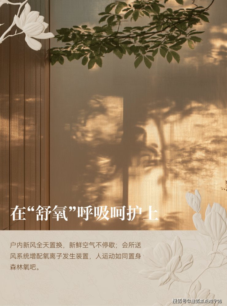 在“舒氧”呼吸呵护上,户内新风全天置换,新鲜空气不停歇;会所送风系统增配氧离子发生装置,人运动如同置身森林氧吧。