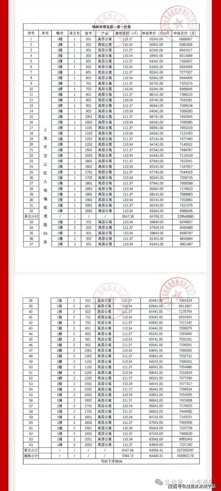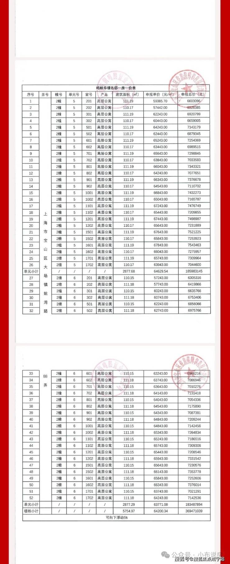 一房一价表如下: