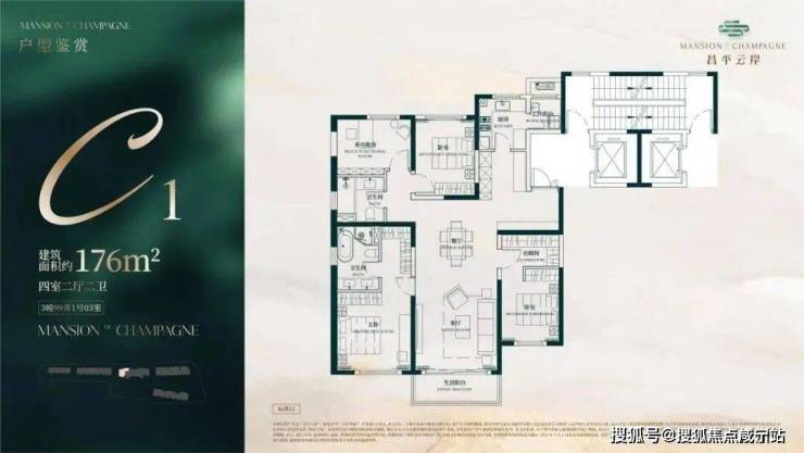 建面约176㎡4房2厅2卫户型