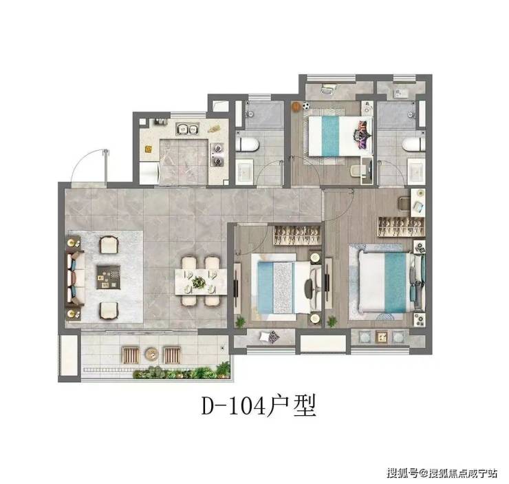 四开间朝南+主卧套房设计+全卧室带飘窗+南北通透+超大的宽面阳台,做出了拥有120㎡以上户型的尺度感和舒适度。如果预算合适,这个户型绝对推荐。