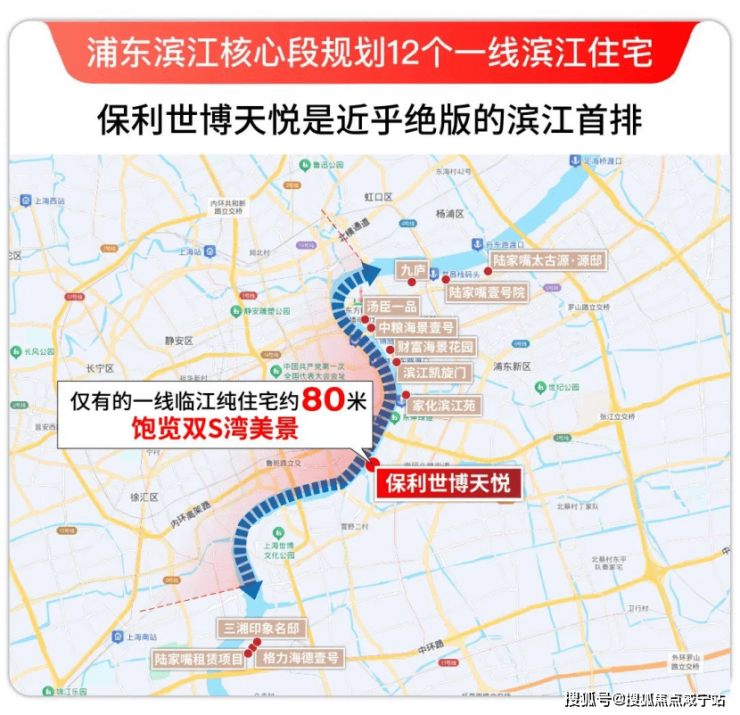 浦东滨江核心段(杨浦大桥-徐浦大桥)共规划12幅一线滨江住宅用地,其中9个已是现状小区,1个即将交房,2个在售中(保利世博天悦是其一)。
