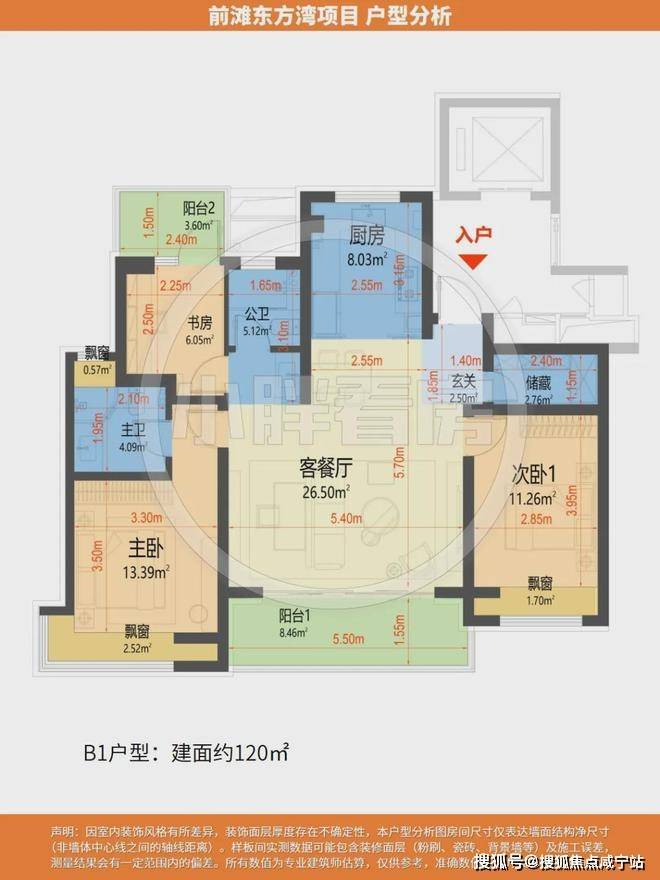 建面120㎡B1户型,约12㎡南北双阳台空间,阳台“买1赠1”,赠送约6㎡,次卧拓展后都有舒适尺度,更附赠约4.79㎡飘窗,实得率超88%。