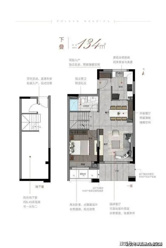 下叠四室两厅三卫设计,由地上2层和地下1层组成,—楼客厅南向可直达室外花园,享有亲近自然、阳光、绿地的惬意生活。
