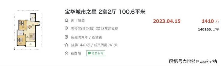 宝华城市之星,是高层住宅小区,房龄大约5年,最新二手成交均价已达14万/㎡。