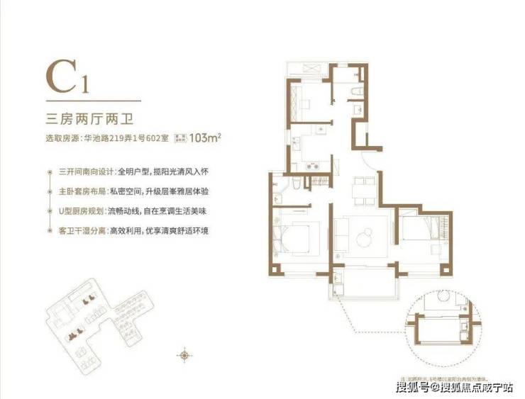 户型设计灵动,目前开放了104㎡3房2厅2卫和103㎡3房2厅2卫样板间,可谓是各有看点: