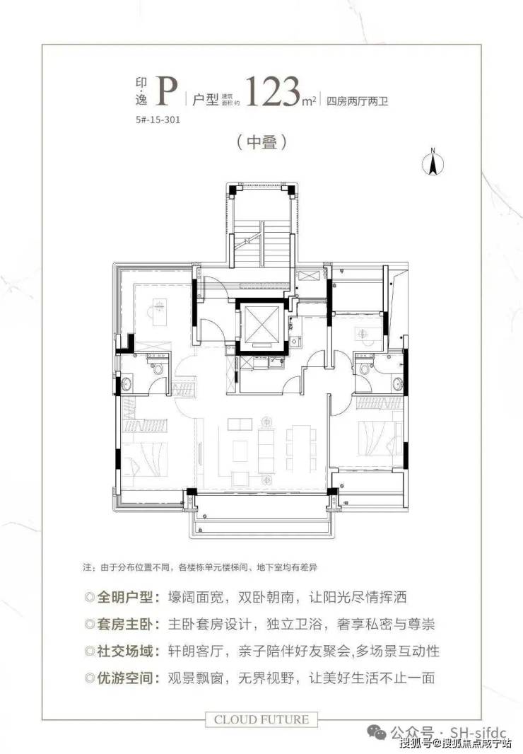 建面约123㎡户型可拓展空间示意图,仅供参考