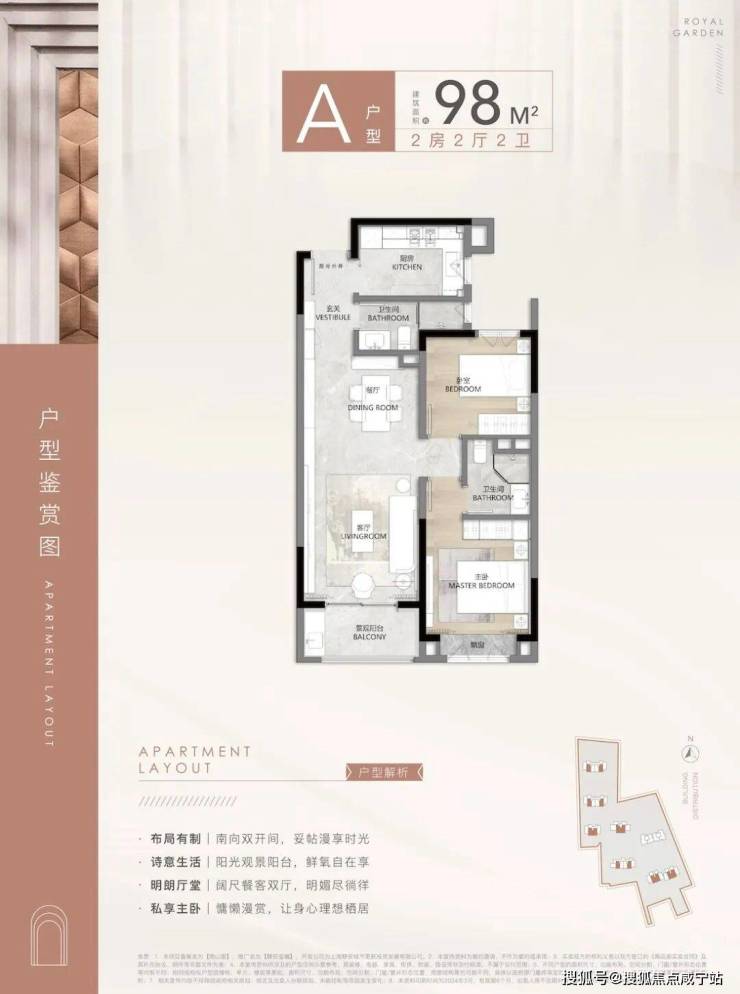 在售面积:94㎡/98㎡/100㎡2房2厅2卫