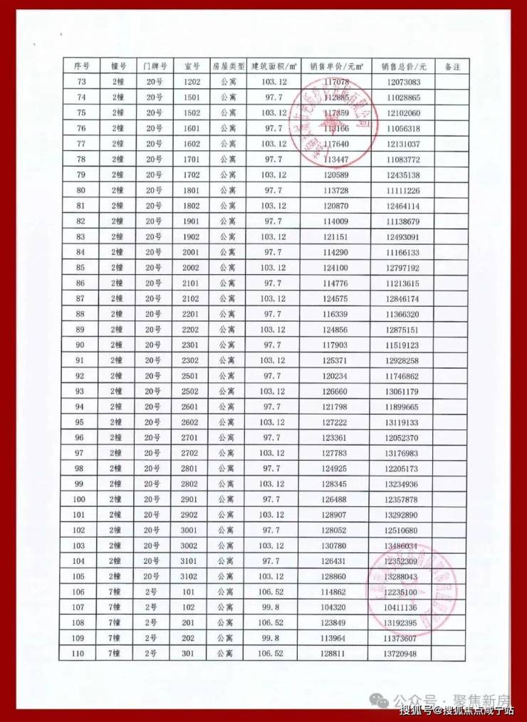 项目一房一价表