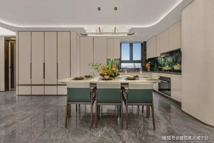 南向大横厅,用光线阐述空间的舒适度与高级感,U型中厨搭配多功能开放西厨,满足世界级美食品位。