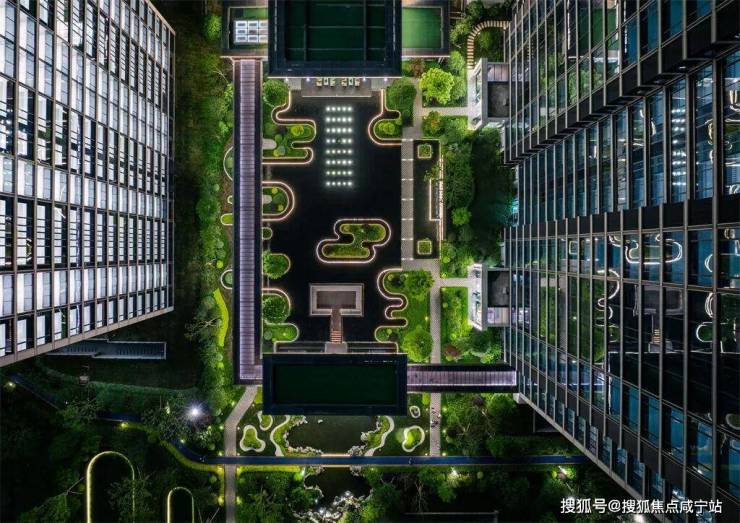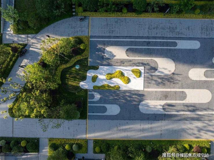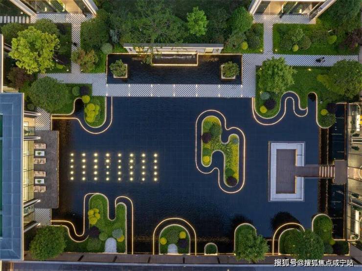 6000方的草坪,精心打造了“云纹”造型,还用了灯带修饰,轻盈流畅,独具美感,颇有“云境”氛围。
