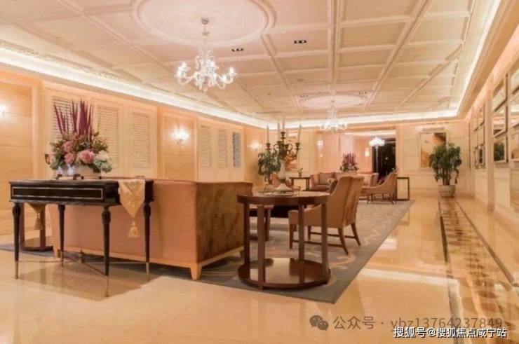 大堂:12米挑高+大理石墙面