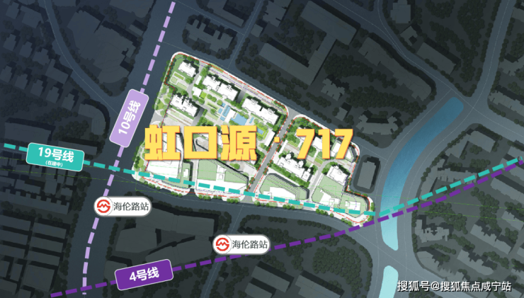 「北外滩虹口源·717」,是继瑞虹之后虹口内环内仅有的又一个大型综合体项目;占地面积3.9万㎡,下沉式设计,其中,地上规划建筑面积约17万㎡,地下规划建筑面积约11万㎡。