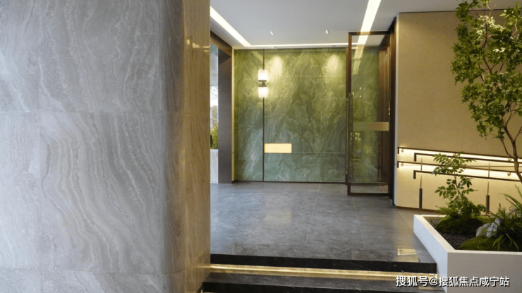 比如这款水墨云灰大理石,在社区门头、景墙、立面、公区都被用作主要材料