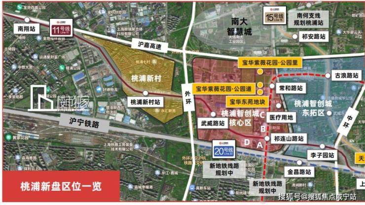 以宝华紫薇花园为例,项目直线距11号线祁连山路站约1.5公里,直线距15号线古浪路站约1.5公里,在远期规划中,还会有2条轨交的规划,未来4轨环绕+中环+外环+上海西站的交通枢纽,串联起桃浦和市中心。
