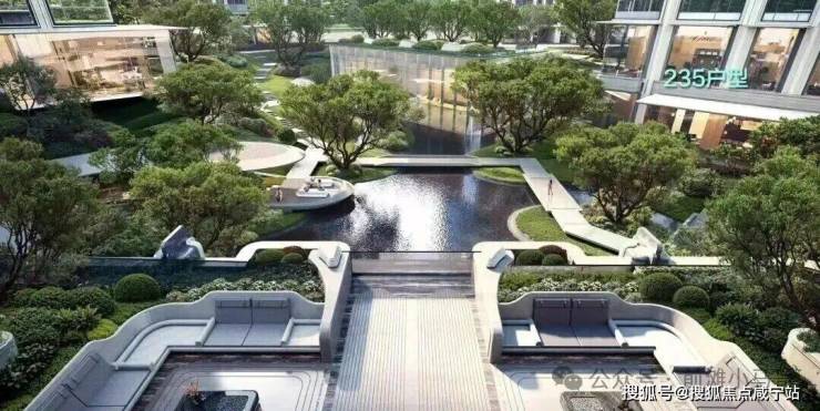 约3500㎡下沉式水院构成社区的核心灵魂,游艇式观景舱的设计让所有视线都朝向水景;