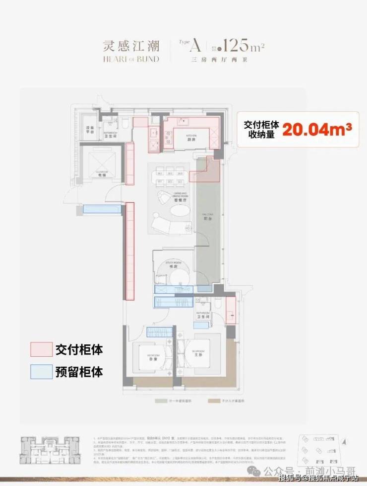 收纳也是项目户型的重点,据沪上好房统计,项目125㎡3房边套户型的整体交付柜子+预留衣柜,收纳空间可以达到约20.04m³(若以28升的行李箱丈量,它能从容收纳200个);中间套户型收纳空间也能达到约16.56m³!
