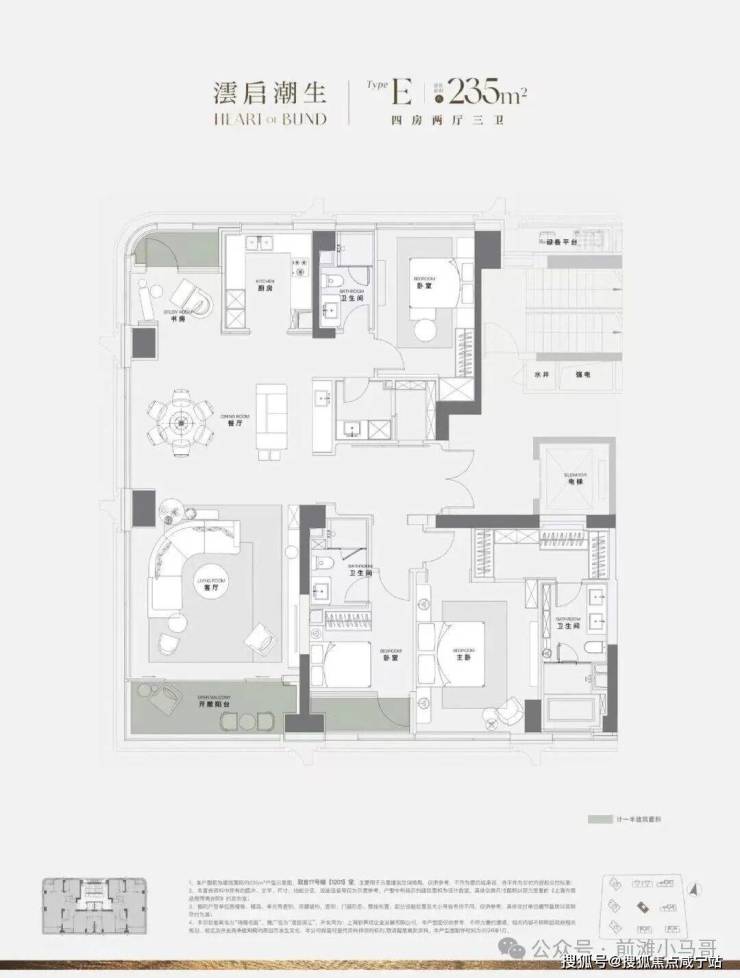 建面235㎡户型四房两厅三卫,打造上海首个滨江 32.5°央景王座,以 IMAX 级巨幕江厅为核心,借 32.5°黄金偏转的央景优势,将黄浦江2公里江景长卷纳入室内,大面宽瞰江视野搭配科学的空间规划,兼顾私密与尊崇,于细节处雕琢高端生活质感,完美匹配高净值人群的生活需求。享受江景+园景双无敌景观视野;低区3000万左右,可以拥有小区中心极致园景与下沉景观。