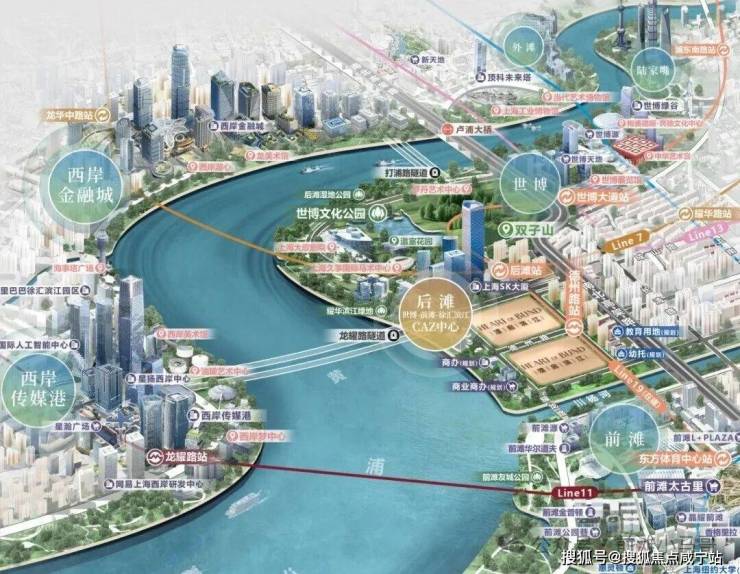 商业方面,项目北有世博天地,南有前滩太古里,对岸还有西岸梦中心和西岸金融城,随便一个都是全球城市顶流商圈的级别。
