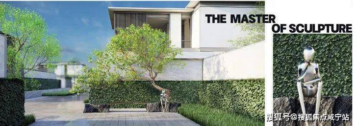 合院的景观设计体现了返璞归真,现代精致的生活本质,并且演绎出前瞻艺术,城市会客的隐贵礼序。将中国古典园林与西方园林取长补短,相得益彰,营造一轴两街三园,四坊十巷的通达之所,并融入现代工艺美术大师精典雕塑作品及名贵树种,安置于阡陌交错间的节点。艺术品装饰社区公共空间,主题阶段性布展式地呈现于业主的面前。横纵阡陌间点缀的艺术品与名贵乔木,宛如星河,异彩纷呈,呈现出自然园林与现代艺术融合的视觉盛宴。