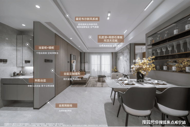 比如卫浴空间,升级镜柜,植入美妆冰箱、主卫卫洗丽等现代化配置;