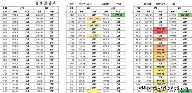 剩余房源一房一价表▼