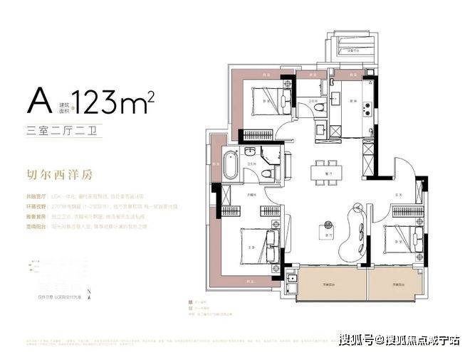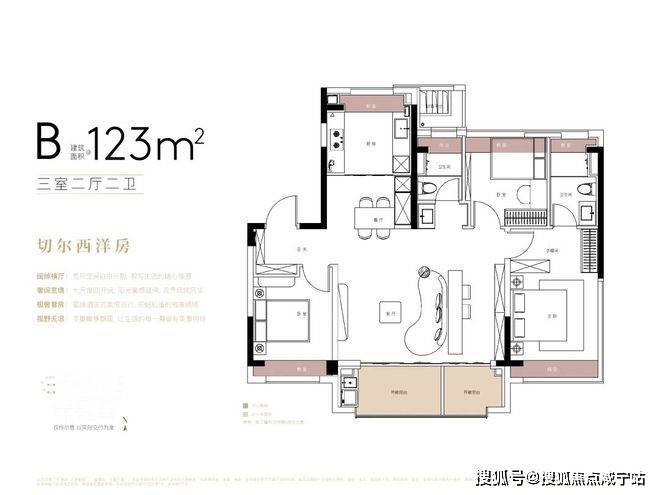 建面约123m3房2厅2卫(A户型-竖厅),约108套(02-09地块)