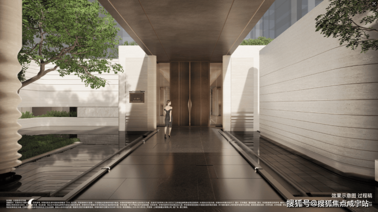 ✅招商中旅壹江臻邸售楼处电话:400-8800-703✅︎✅︎✅约5米宽的流光回廊,打造无风雨归家体系,以香槟铝板为顶、辅以黄金比例柱列,涌泉水钵,展现了【水】的不同表现形式。