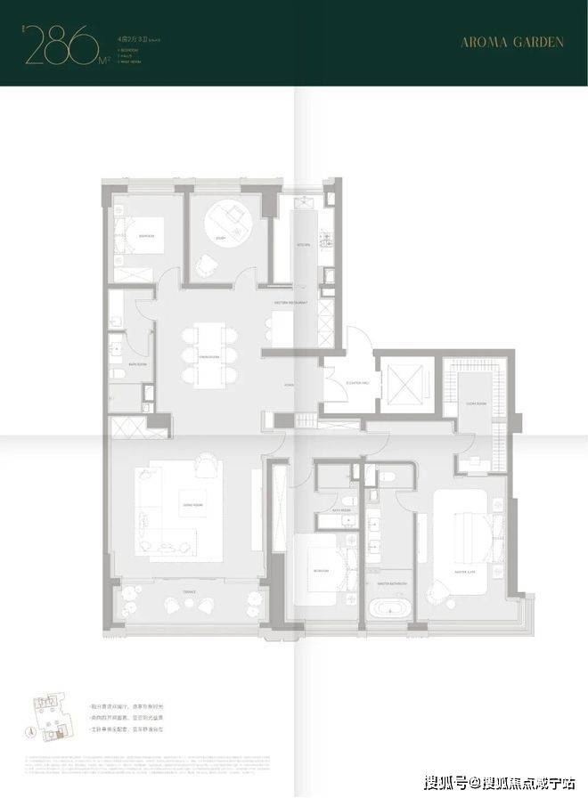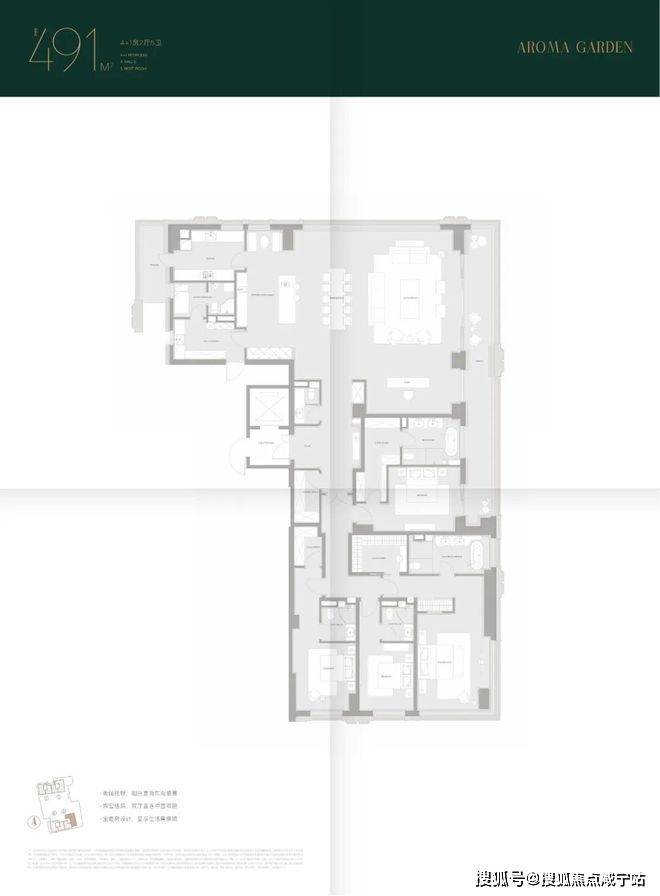 491㎡户型:南向面宽 26 米、双主卧、中西双厨、家政动线独立
