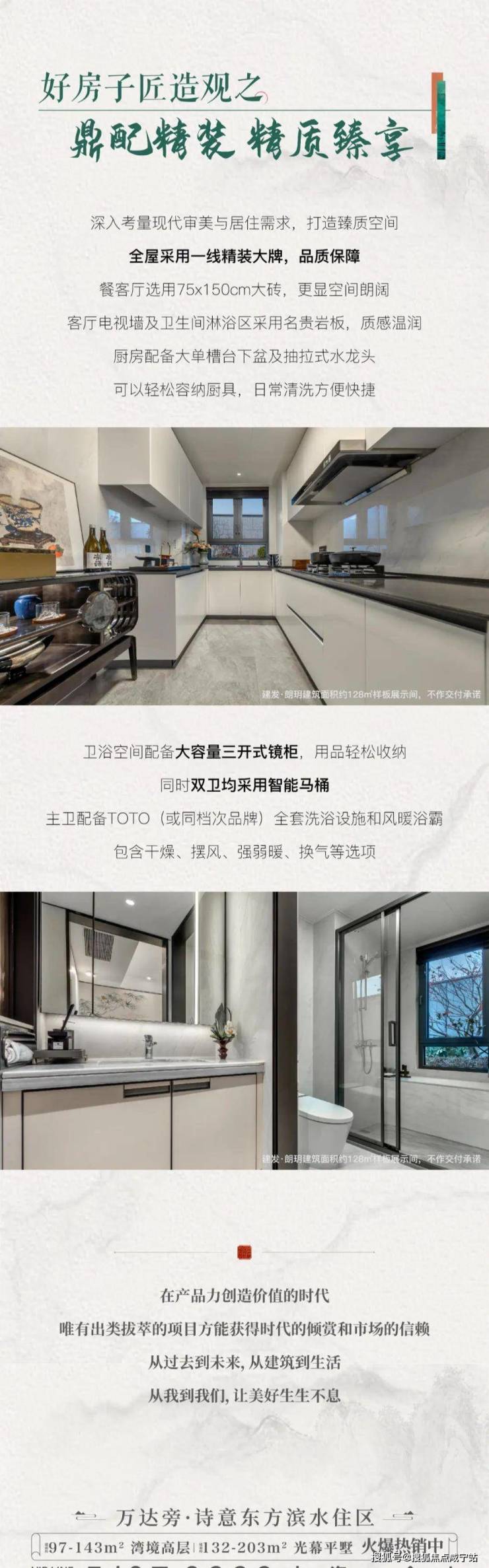 值得一提的是,所有改善户型均为精装交付,标准对标建发高端产品线:大金中央空调、威能地暖、汉斯格雅卫浴、方太厨电,细节处如感应夜灯、USB 插座、厨房凉霸等,尽显人性化关怀。
