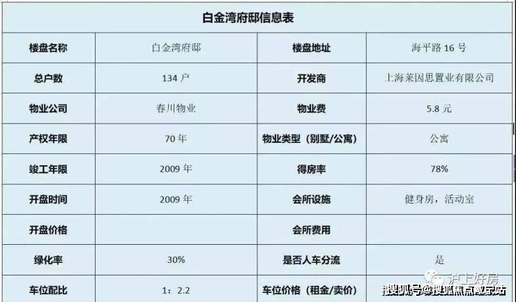 【白金湾府邸】共由三部分构成,分别是大型商场、府邸住宅和悦榕庄酒店.白金湾府邸总占地面积20205平米,总建筑面积104955平米,容积率为4.36,总绿化率38.84%.