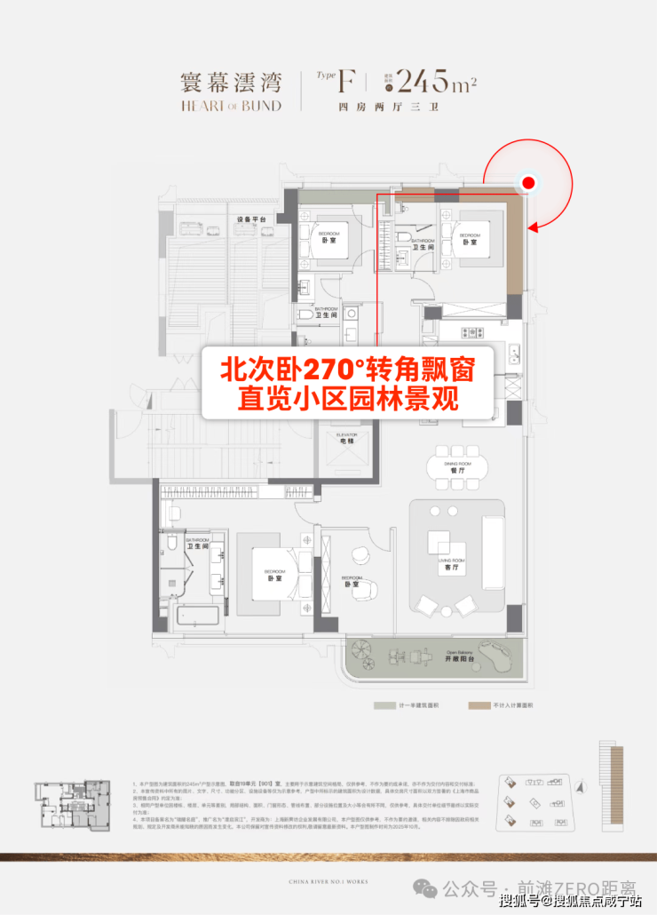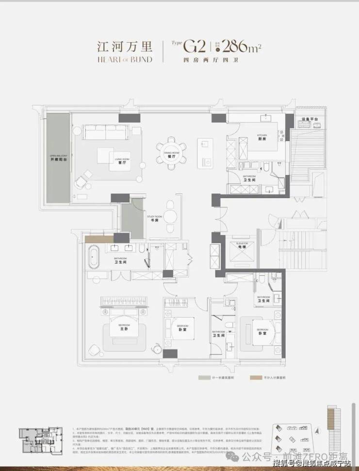 “楼王”产品——约230-286平方米江景大平层,西边户配备270度落地采光窗,主卧套房面积约40平方米,带独立卫生间、步入式衣帽间和观景飘窗。中西厨分离设计、嵌入式高端家电配置,则满足了高端家庭的宴请需求。