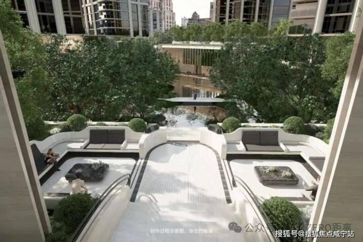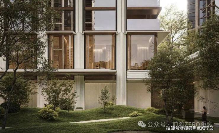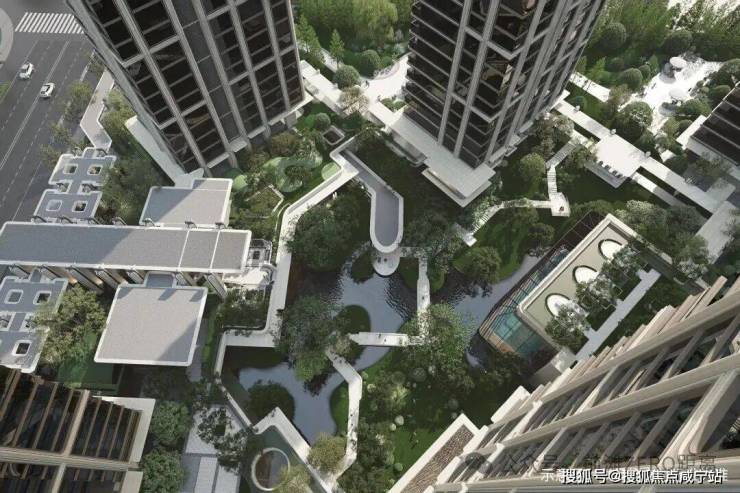 在景观方面,项目内部设置约3500㎡下沉庭院,地下通过坡地自然过渡至地上园区,在核心景观区,通过约6.6米超高架空与6.3米下沉庭院打造约13米高差的全维森境体验。